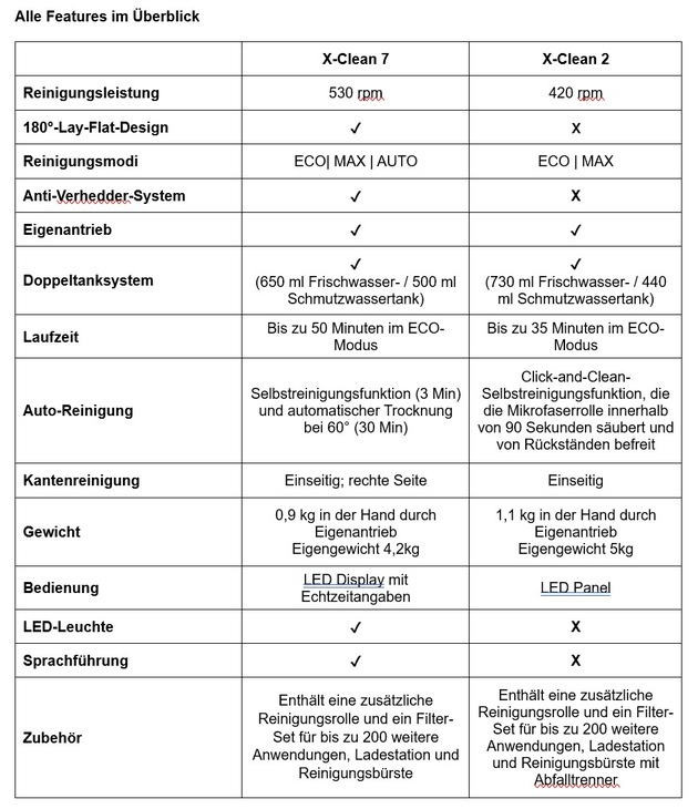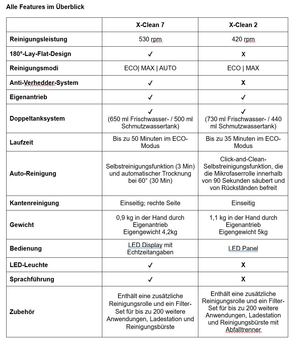 X-Clean 7: Kraftvoller 2-in-1-Saugwischer mit vielseitigen Funktionen für maximalen Komfort // X-Clean 2: Einsteigermodell mit voller Wisch- und Saugleistung