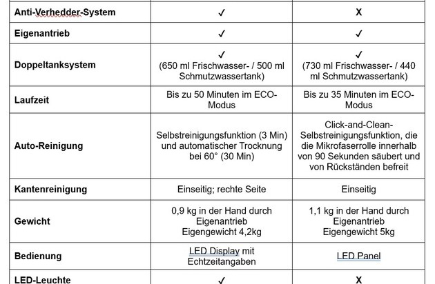[1] Im Vergleich zu kabellosen Handstaubsaugern und herkömmlichen Mopps.