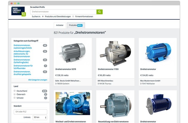 Im Mittelpunkt der Suche professioneller Einkäufer stehen konkrete Produkte, die den jeweiligen Anforderungen entsprechen müssen. Deshalb vollzieht die in Deutschland, Österreich und der Schweiz führende Anbietersuche "Wer liefert was" nun einen entscheidenden Schritt für die gesamte Branche: Ab sofort kann jeder Suchende für bestimmte Suchbegriffe nicht nur die Kontaktdaten eines passenden Anbieters, sondern auch über Produktbilder, Produktdetails, Preisangaben, Lieferzeiten sowie Verfügbarkeiten die entsprechenden Firmen finden. "Bis Ende 2015 werden wir bereits über drei Millionen Produkte mit umfassenden Präsentationen auf unserer Plattform haben", verspricht Peter F. Schmid, CEO von "Wer liefert was".