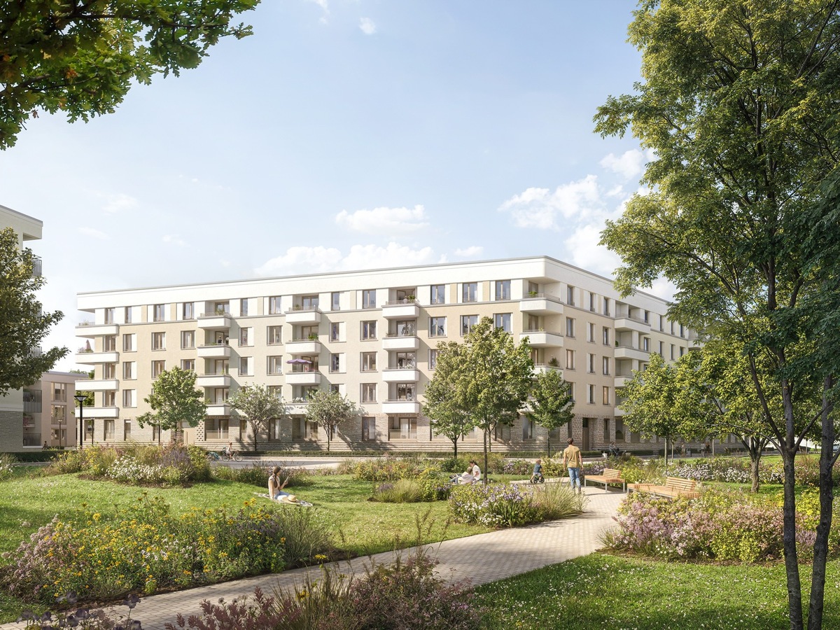 Ein fünfgeschossiger Neubau mit 146 Mietwohnungen (46–121 m², zwei - fünf Zimmer). Fast alle Wohneinheiten sind barrierefrei, jede Wohnung verfügt über eine Loggia, Terrasse oder einen Balkon sowie eine Einbauküche. Eine Tiefgarage mit 37 Stellplätzen sowie 15 oberirdische Stellplätze ergänzen das Angebot. Mindestens 30 % der Dachfläche wird mit Photovoltaikanlagen ausgestattet, 50 % der Dachfläche wird begrünt. Das DGNB-Vorzertifikat in Gold unterstreicht zusätzlich den hohen Nachhaltigkeitsstandard des Projekts.