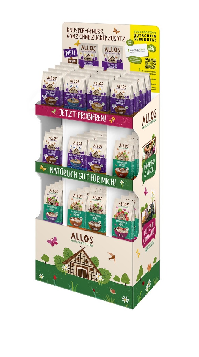 Der Launch der Neuprodukte wird mit aufmerksamkeitsstarken Zweitplatzierungsdisplays sowie PR- und Social-Media-Maßnahmen begleitet. Das beliebte Allos-Magazin mit Tipps und Rezepten für einen unkomplizierten und bewussten Lebensstil ist ab April kostenlos für Partnermärkte verfügbar. Im Display oder an der Kasse sorgt es für zusätzliche Aufmerksamkeit bei Verbraucher:innen.