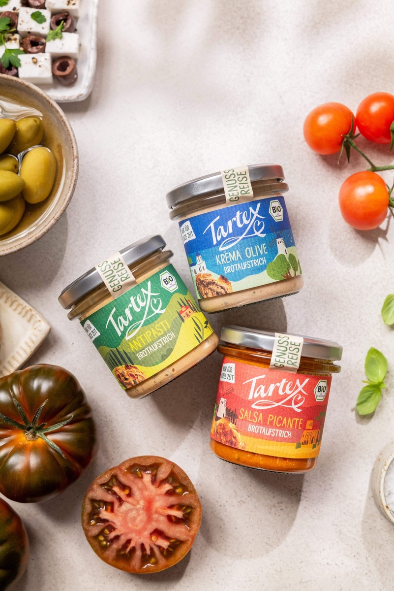 Wenn der Duft von Mittelmeeraromen das Abendbrot begleitet, dann ist der „Urlaubsmodus“ auch zuhause nur einen Brotaufstrich entfernt: Tartex – Marktführer bei ungekühlten, herzhaften, pflanzlichen Brotaufstrichen – bringt ab März 2026 die Limited Edition „Genuss Reise“ in den Handel. Drei neue Sorten, inspiriert von beliebten Urlaubsländern der Deutschen, holen Sommerfeeling ins Glas und sorgen für Abwechslung auf dem Brot: Kréma Olive (Griechenland), Salsa Picante (Spanien) und Antipasti (Italien).