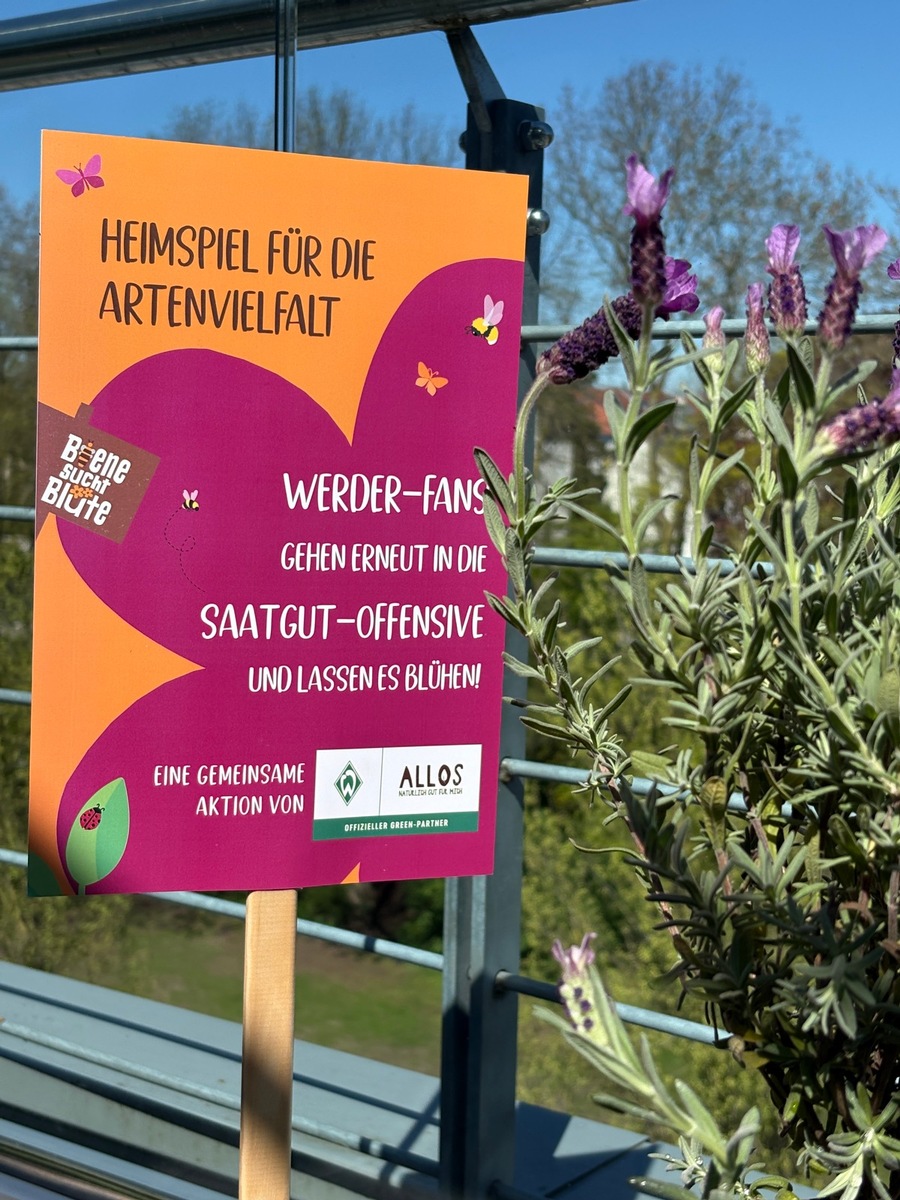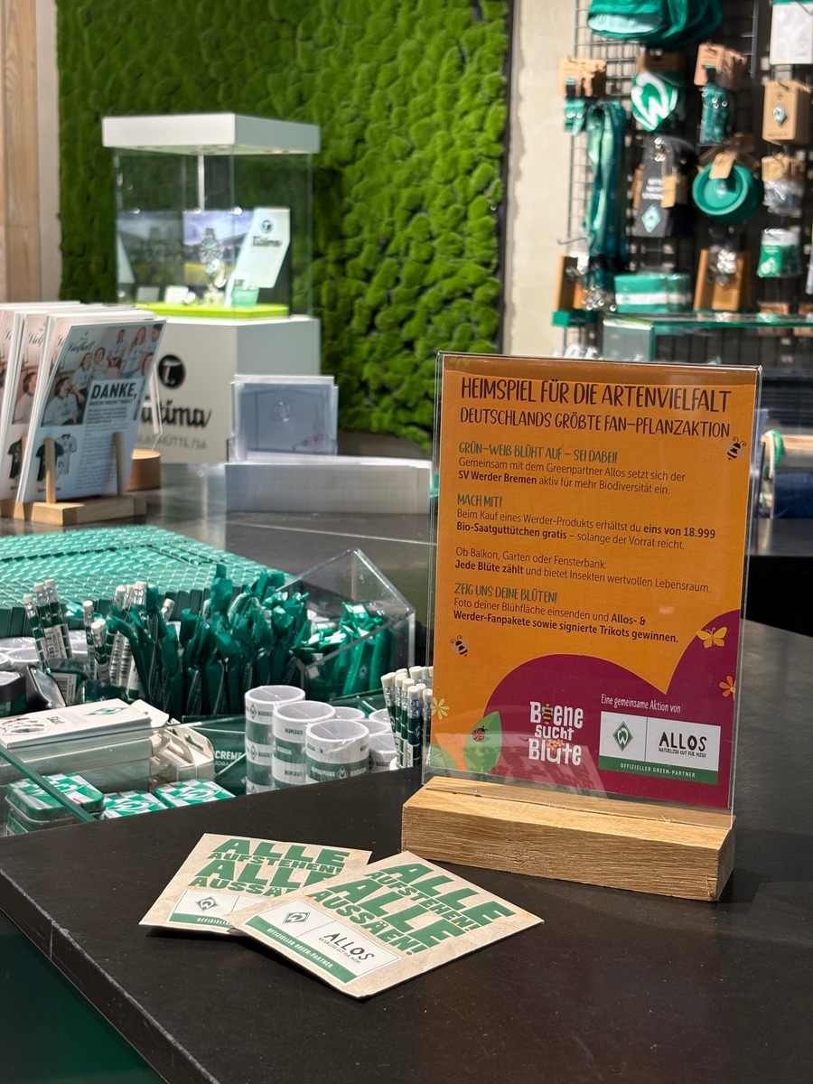 Ab sofort erhalten Fans die Bio‑Saatgutmischung beim Kauf eines Werder‑Produktes im Fanshop oder im offiziellen Online‑Shop. Ziel der Initiative ist es, gemeinsam mit der Werder‑Community kleine Blühflächen zu schaffen, die Insekten wertvollen Lebensraum bieten und einen Beitrag zum Erhalt der Artenvielfalt leisten. Bereits seit über 10 Jahren ist Allos mit der Blühwiesen-Initiative Biene sucht Blüte aktiv und erreicht nun über die gemeinsame Initiative mit Werder neue Unterstützer.