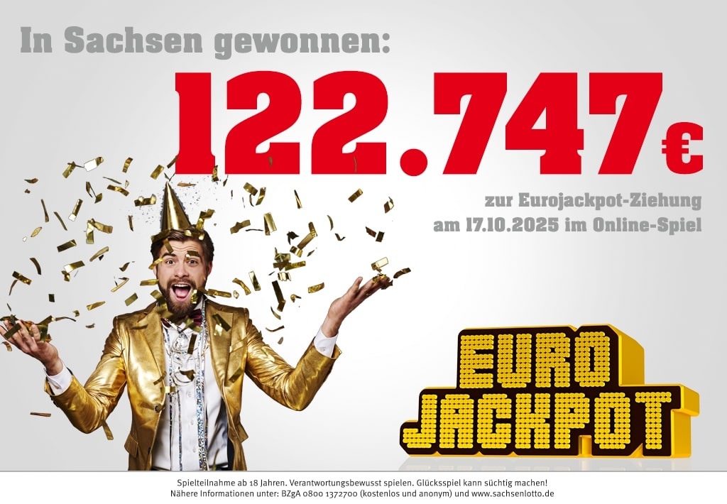 Der Herbst bringt nicht nur bunte Blätter, sondern auch einen Geldregen: Ein Mitspieler aus Chemnitz hat bei der Eurojackpot-Ziehung am Freitag, dem 17. Oktober, stolze 122.747 Euro gewonnen. Er hat seinen Tipp auf sachsenlotto.de abgegeben – und das mit Erfolg: Fünf Gewinnzahlen waren richtig, damit lag der Treffer in Gewinnklasse 3.