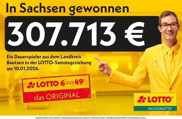Ein Lottospieler aus dem Landkreis Bautzen startet mit 307.713 Euro ins neue Jahr. Bei der Ziehung am 10. Januar traf er sechs Richtige – nur die Superzahl fehlte zum Millionenjackpot.