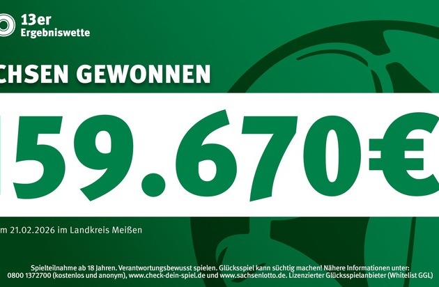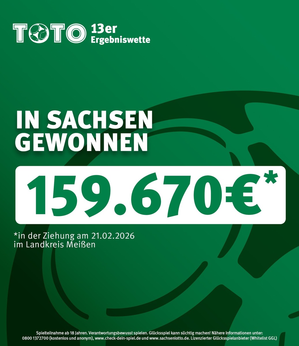 TOTO-Gewinn im Landkreis Meißen: 159.670 Euro für die einzige richtige Vorhersage bei der 13er Wette