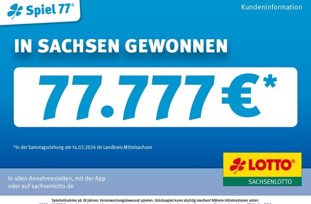 Mit dem nahenden Frühlingsbeginn wächst die Lust auf neue Pläne – und für einen Lottospieler aus dem Landkreis Mittelsachsen gibt es jetzt den passenden finanziellen Spielraum: Bei der Ziehung am Samstag, den 14. März 2026, gewann er 77.777 Euro in der Zusatzlotterie Spiel 77.