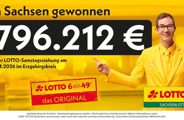 Die berühmten „6 Richtigen“ können vieles verändern: Ein Lottospieler aus dem Erzgebirgskreis hat bei Sachsenlotto in der Ziehung am Samstag, den 11. April, beeindruckende 796.212,80 Euro gewonnen.
