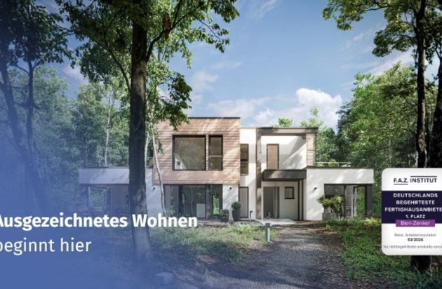 In der aktuellen Studie "Deutschlands begehrteste Produkte& Services 2026" des F.A.Z.-Instituts und des Kölner Analysehauses ServiceValue wurde das Unternehmen Bien-Zenker als Deutschlands begehrtester Fertighausanbieter mit Platz 1 in seiner Branche ausgezeichnet. Die bundesweite Untersuchung bestätigt, was viele Bauherren bereits erfahren haben: Bien-Zenker steht für Häuser, die nicht nur individuell geplant und gebaut, sondern mit Leidenschaft entwickelt werden. Die Auszeichnung würdigt eine außergewöhnlich hohe Attraktivität in der Branche - und unterstreicht den Anspruch des Unternehmens, Wohnträume Wirklichkeit werden zu lassen.