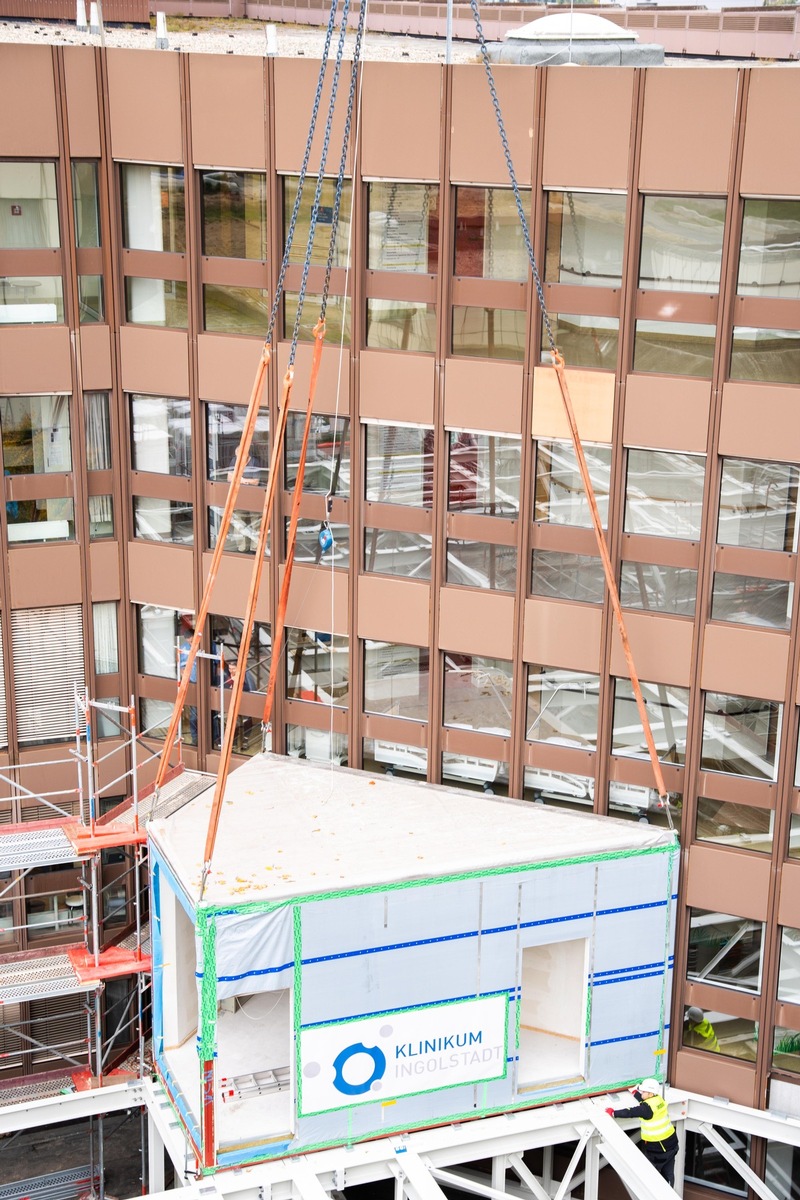 Generalsanierung: Zwei neue Stationen in Modulbauweise entstehen derzeit auf dem Dach des Klinikums