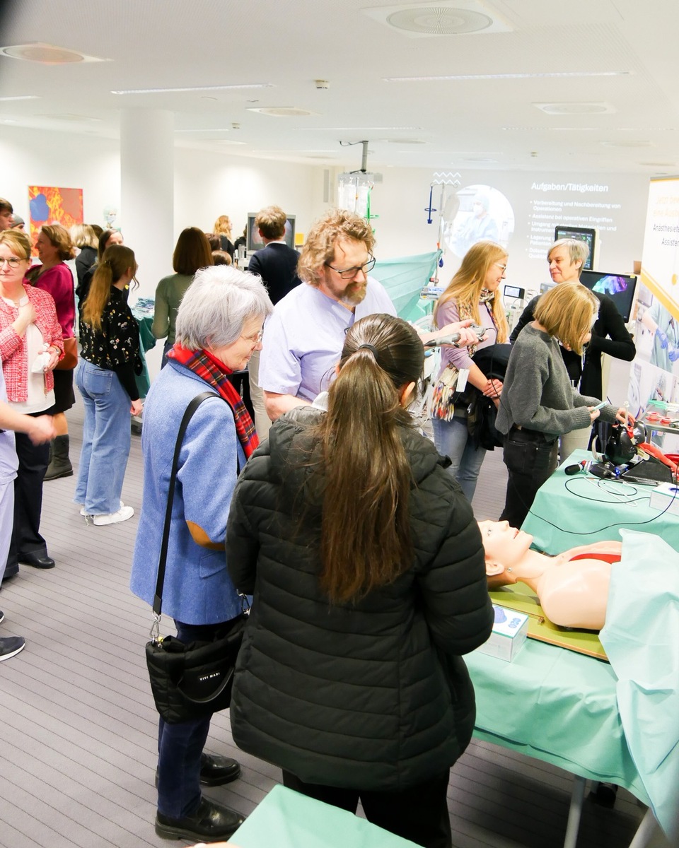 In interaktiven Workshops erhalten die Besucherinnen und Besucher praxisnahe Einblicke, zum Beispiel in Erste-Hilfe-Maßnahmen und Pflegetechniken. In geführten Rundgängen können sie die Klassen- und Praxisräume erkunden. Mitmach-Aktionen laden dazu ein, in den Alltag von Pflegefachkräften, operationstechnischen Assistentinnen und Assistenten, anästhesietechnischen Assistentinnen und Assistenten, medizinischen Technologinnen und Technologen sowie Logopädinnen und Logopäden, Ergotherapeutinnen und Ergotherapeuten und Physiotherapeutinnen und Physiotherapeuten hineinzuschnuppern.
