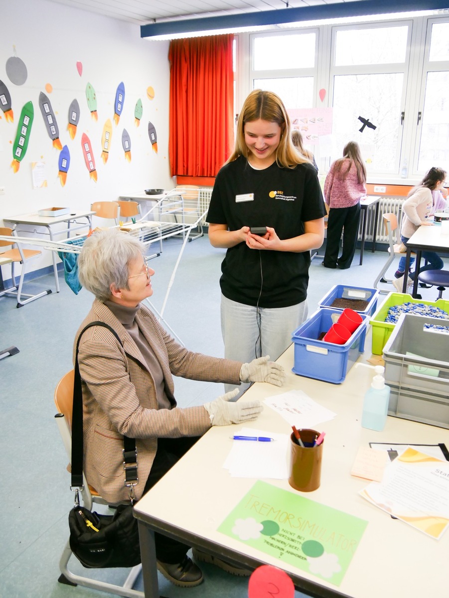 Auf dem Foto „Frau Deneke-Stoll“ : Beim Besuch der Berufsfachschule für Ergotherapie testet Ingolstadts zweite Bürgermeisterin Dr. Dorothea Deneke-Stoll einen Tremorsimulationshandschuh.