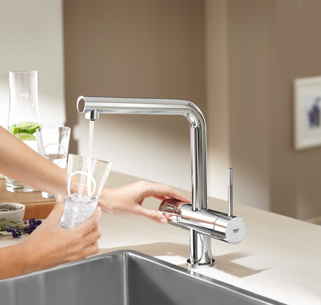 Es spricht also alles dafür, seinen Durst mit Leitungswasser zu löschen, denn mit einem praktischen Trinkwassersystem lassen sich auch die letzten Gegenargumente entkräften: Wer zum Beispiel lieber Sprudel trinkt oder auch vom Geschmack des Leitungswassers noch nicht überzeugt ist, der kann mit Grohe Blue das Wasser aus der Küchenarmatur unkompliziert veredeln. Das System liefert leckeres, gefiltertes und gekühltes Wasser in den Varianten still, medium und sprudelnd direkt aus der speziellen Küchenarmatur. Die innovativen Filter mit Ionen-Austauscher und - auf Wunsch - Magnesium-Zugabe sorgen zudem für optimalen Geschmack. Das ist gut für die Gesundheit und das Wohlbefinden.