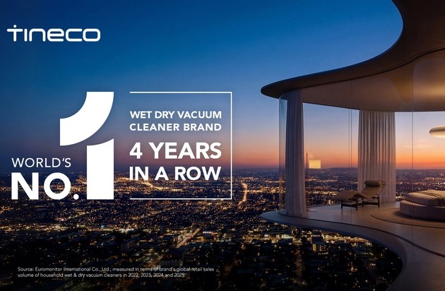 Tineco, weltweit führender Anbieter intelligenter Bodenreinigungssysteme, gibt bekannt, dass Euromonitor International das Unternehmen zum vierten Mal in Folge als weltweit führende Marke im Segment der Nass-Trocken-Sauger für Haushalte ausgezeichnet hat*. Die Anerkennung durch einen der führenden unabhängigen Anbieter von Marktforschung unterstreicht Tinecos anhaltende Führungsposition und Wachstumsdynamik innerhalb der globalen Smart-Home-Kategorie.