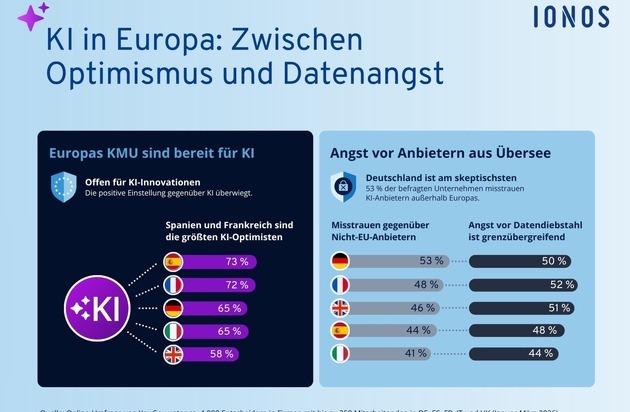 *Die verwendeten Daten beruhen auf einer Online-Umfrage der YouGov Deutschland GmbH im Auftrag von IONOS unter insgesamt ca 4.000 Entscheidern aus kleinen und mittelständischen Unternehmen mit bis zu 250 Mitarbeitenden in Deutschland, Frankreich, Großbritannien, Italien und Spanien (Befragungszeitraum: Januar-März 2026).