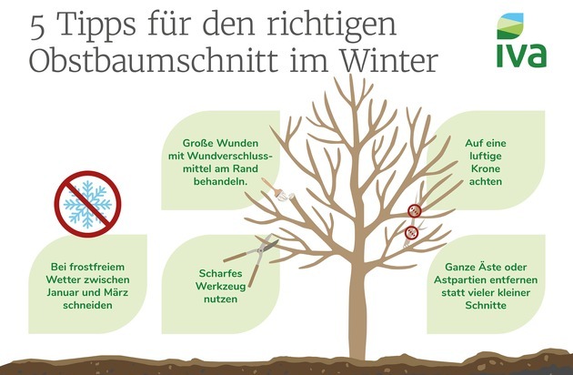Ein gezielter Rückschnitt macht Bäume widerstandsfähiger und fördert die Bildung von gesundem Fruchtholz. Dr. Regina Fischer vom Industrieverband Agrar e. V. (IVA) bringt es auf den Punkt: "Obstbaumschnitt ist auch Pflanzenschutz. Durch eine gut aufgebaute, luftige Krone trocknet das Laub nach Niederschlägen schneller ab und Krankheitserreger haben deutlich schlechtere Bedingungen." Gleichzeitig fördert der Schnitt die Ausbildung aromatischer, gut ausreifender Früchte und trägt dazu bei, Wuchsform und Stabilität der Bäume langfristig zu erhalten.