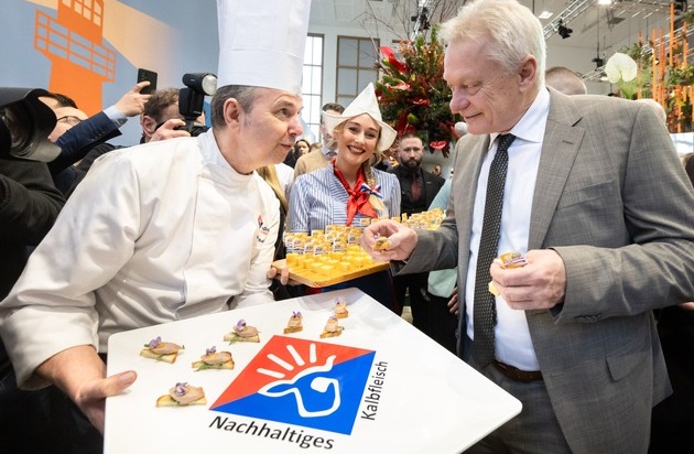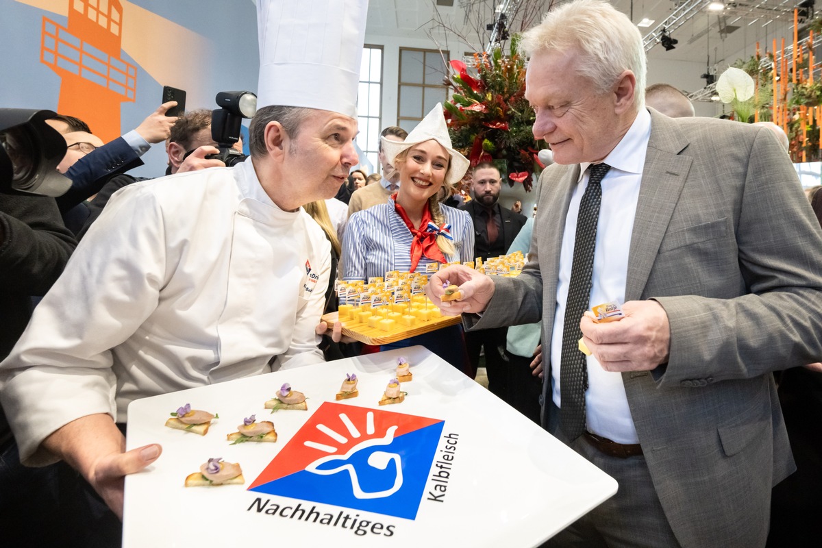 Zum Auftakt der Internationalen Grünen Woche (IGW) in Berlin gab es in der "Holland-Halle" Kalbsweißwurst von der VanDrie Group. Der deutsche Bundesminister für Landwirtschaft, Ernährung und Heimat, Alois Rainer, und Femke Marije Wiersma, die niederländische Ministerin für Landwirtschaft, Fischerei, Ernährungssicherheit und Natur, eröffneten die IGW dort gemeinsam.