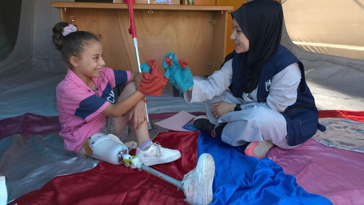 "Prothesen werden mit minimalen Mitteln und unter gefährlichen Bedingungen hergestellt," sagt Heba. "Manche Materialien stecken monatelang an den Grenzen fest. Wir brauchen dringend freien humanitären Zugang und Unterstützung der Rehabilitationsdienste - besonders für Kinder und Menschen mit Behinderung." Reha-Geräte sind knapp oder beschädigt und die Vorräte an Hilfsmitteln und Prothesenmaterialien gehen schnell zur Neige, darunter Rollstühle, Hör- und Mobilitätshilfen sowie Rohstoffe für Prothesen. Tausende Patient*innen stehen auf der Warteliste für Rollstühle und für Gehhilfen.