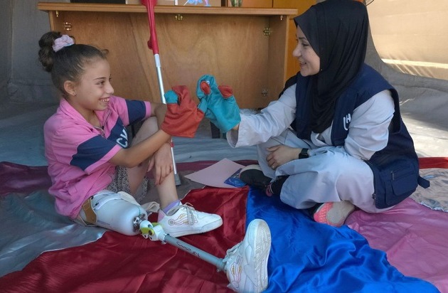 Tausende haben durch Raketen, Bomben oder Blindgänger Gliedmaßen verloren. An die 6.000 Prothesen werden benötigt, darunter viele für Kinder, so die Weltgesundheitsorganisation WHO. Das Team von Handicap International (HI) erstellt provisorische Prothesen in einem Reha-Zentrum in Zawaida und versorgt Schwerverletzte mit Physiotherapie und psychologischer Hilfe. Heba vom HI-Team ist eine der wenigen Orthopädie-Fachkräfte, die derzeit in Gaza weiterhin arbeiten kann. Sie baut Prothesen und passt sie den amputierten Menschen an. Sie untersucht Verletzungen, misst Bein- und Armstümpfe aus, fertigt Abdrücke für Prothesen an.