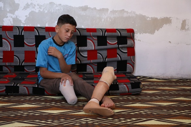 Hier finden Sie Informationen über Mohamed aus Syrien und über Omaid aus Afghanistan, die durch Blindgänger jeweils ein Bein verloren haben.