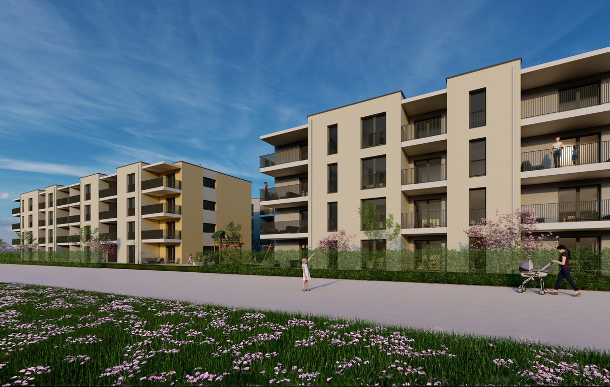 Bis Ende 2027 soll der Neubau fertiggestellt werden. Die Fassade ist als hochgedämmtes Wärmedämmverbundsystem mit Klinkerriemchen, Kunststofffenstern und dreifacher Isolierverglasung konzipiert. Zudem sind Wärmepumpen und eine unterstützende Photovoltaikanlage auf dem Dach geplant. Alles zahlt auf die Realisierung als KfW 40 Effizienzhaus im QNG-Nachhaltigkeitsstandard ein.