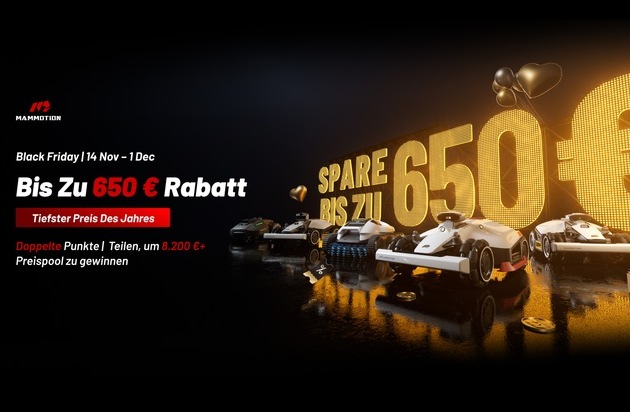 MAMMOTION startet großen Black Friday Sale - bis zu 650 Euro Preisvorteil auf das gesamte Sortiment