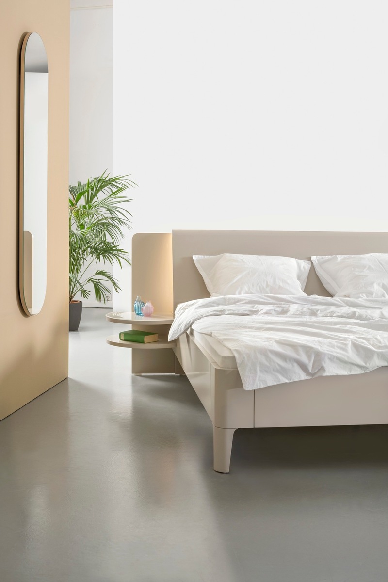 Das neue „GOYA+“-Bettsystem setzt auf hohe Variabilität mit unterschiedlichen Betthöhen, modularen Nachttischen sowie vielfältigen Fuß- und Polsteroptionen. Sanfte Rundungen verleihen dem Schlafzimmer eine sinnliche, leichte Anmutung.