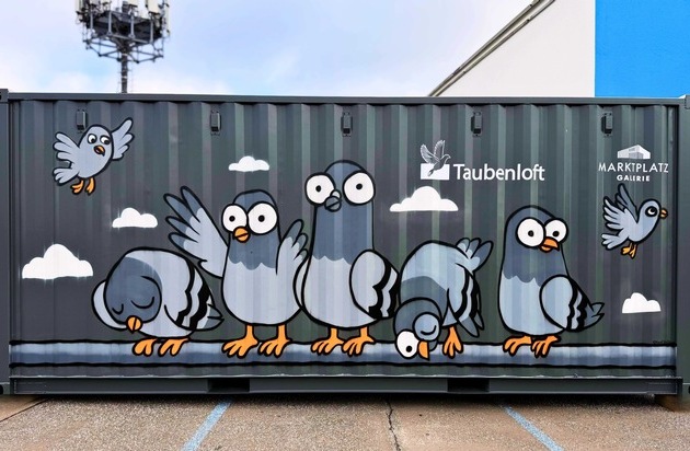 Ein besonderer Hingucker ist die Außenfassade des Containers: Comic-Tauben, gestaltet vom Hamburger Graffiti-Künstler Vincent Schulze, machen das Loft nicht nur funktional, sondern auch optisch zu einem Highlight. So fügt sich das Projekt harmonisch in das urbane Umfeld ein und setzt zugleich ein kreatives Zeichen für den Tierschutz.