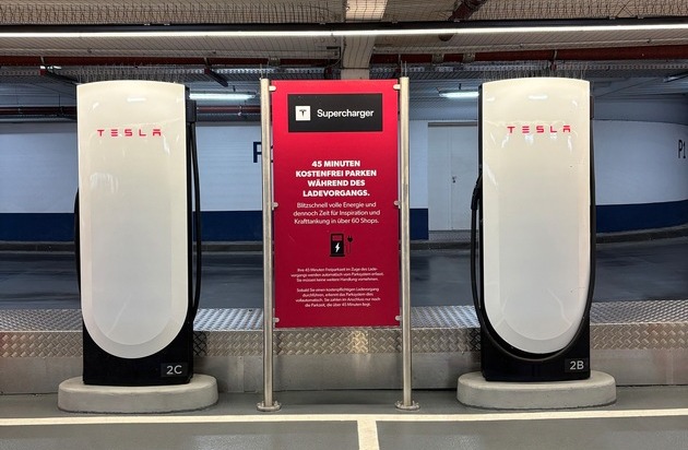 Die Supercharger sind über das Parkhaus der Marktplatz Galerie rund um die Uhr, an sieben Tagen in der Woche zugänglich.