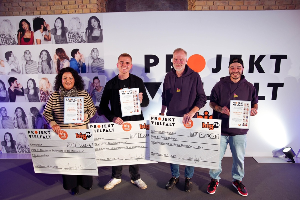 Mannheim, den 18. November 2025. Heute Abend feiert bigFM die diesjährige Preisverleihung von „Projekt Vielfalt“ – eine Initiative, die Menschen sichtbar macht, die sich mit großem Herz für ein respektvolles Miteinander, junge Perspektiven und kulturelle Teilhabe einsetzen. Ab 18:30 Uhr wurde die MANUFAKTUR in Mannheim zum Treffpunkt für die engagiertesten Projekte aus ganz Deutschland.
