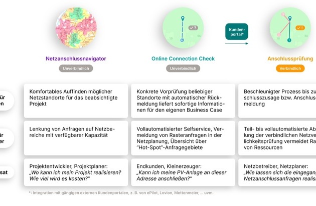 Um diesen komplexen und oft intransparenten Prozess für beide Seiten zu vereinfachen, hat envelio, Europas führender Anbieter von Smart-Grid-Software, den „Netzanschlussnavigator” entwickelt. Über eine interaktive Netzkapazitätskarte können Projektentwickler selbstständig freie Netzkapazitäten ermitteln, geeignete Flächen identifizieren und die voraussichtlichen Kosten des Netzanschlusses kalkulieren. Diese ist über einen Self-Service-Bereich auf der Website des Netzbetreibers zugänglich. Netzbetreiber profitieren im Gegenzug von qualitativ deutlich besseren Anschlussanfragen und weniger Aufwand durch spekulative Projekte.