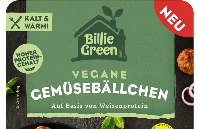 Erbse, Karotte, Paprika und Mais? Ja bitte! Billie Greens vegane Gemüsebällchen sind eine Antwort auf die wachsende Nachfrage nach natürlichen, rein pflanzlichen Alternativen ohne Imitate - und haben mit 54 % den höchsten Gemüseanteil im vergleichbaren Wettbewerb am Markt. Mit ihrer neuesten Produktinnovation, die ab Oktober im Kühlregal sein wird, setzt die Marke Billie Green erstmals auf ein Produkt ohne Fleischersatz-Optik - dafür aber mit vollem Geschmack. Für die Extraportion Protein sorgt hochwertiges Weizenprotein.