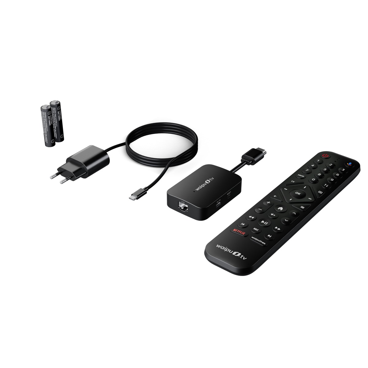 Mit dem waipu.tv Stick haben Nutzer Zugriff auf über 300 HD-Kanäle (mit dem Perfekt Plus-Paket), die waiputhek mit mehr als 40.000 Inhalten sowie Streamingdienste wie Netflix, Amazon Prime, Disney+, WOW und YouTube, die Mediatheken von ARD und ZDF - alles über eine einheitliche Benutzeroberfläche. Die personalisierte Startseite sorgt für individuelle Empfehlungen.