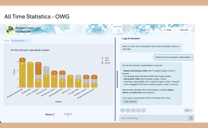 Mit dem FIL-KI-Assistenten LAIA beschreitet der Internationale Rennrodelverband neue Wege in der digitalen Kommunikation und im Wissenstransfer. Das Projekt schafft einen modernen, leicht zugänglichen und gleichzeitig fachlich fundierten Zugang zum Rennrodeln und setzt damit einen innovativen Standard für die Olympischen Winterspiele Milano Cortina 2026 und darüber hinaus.