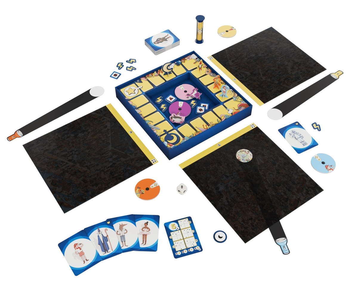 Für Nervenkitzel sorgen schwächer werdende Batterien der Taschenlampen genauso wie die Mond-Figur, die ebenfalls auf dem Spielplan ihre Runden zieht. Ist es schon richtig spät geworden und die ersten Spielenden werden vom Mond erreicht oder überholt, können nur noch Blitz-Karten helfen, um als „Team Adlerauge“ zu gewinnen.