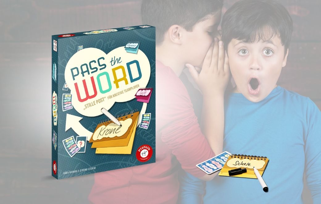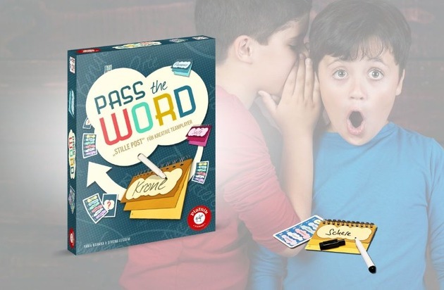 Im neuen, kooperativen Partyspiel „Pass the Word“ sind Kreativität, Teamgeist und ein gutes Gespür für die Antworten der Mitspielenden gefragt. Der österreichische Spieleverlag Piatnik erweitert damit sein Sortiment an Partyspielen um eine Art „Stille Post“, das ganz ohne Konkurrenzgedanken auskommt. Denn am Ende gewinnen oder verlieren alle gemeinsam.