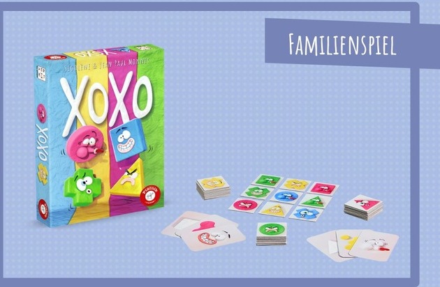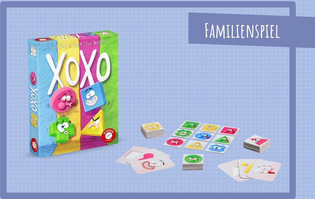 Im kurzweiligen Familienspiel „Xoxo“ vom Wiener Spieleverlag Piatnik dreht sich alles um Farben, Formen und Gesichtsausdrücke. Nach dem bekannten Spielprinzip Tic-Tac-Toe sollen drei Kriterien einer Art eine waagrechte, senkrechte oder diagonale Linie bilden. Aber ganz so leicht, wie es klingt, ist es dann doch nicht: Denn jede der zwei bis vier mitspielenden Personen (ab sieben Jahren) hat mehrere geheime Missionen zu erfüllen. Da sich die Runde eine gemeinsame Auslage teilt, kommt man sich in dem 3x3-Plättchen großen Raster leicht in die Quere. Wer nicht gut aufpasst, verhilft vielleicht sogar unfreiwillig der Konkurrenz zum schnellen Sieg.