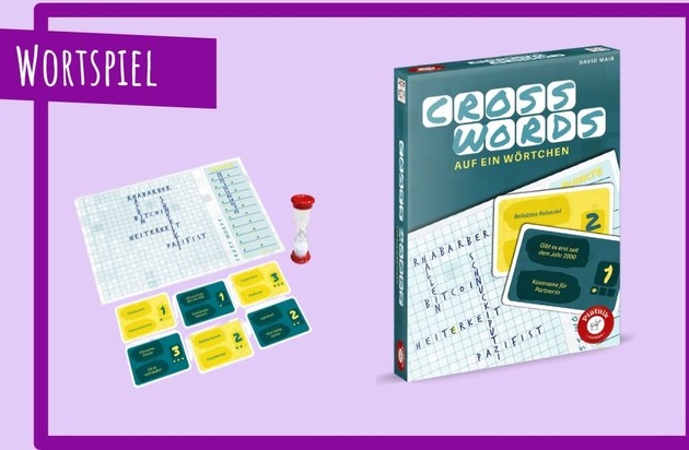 Ein Kreuzworträtsel der ganz besonderen Art präsentiert der Wiener Spieleverlag Piatnik mit „Cross Words“. Bei diesem familienfreundlichen Wortspiel von Autor David Mair kommt es auf Wortgewandtheit und Schnelligkeit an und es zählt jeder Buchstabe: Wer zeigt Köpfchen und starke Nerven, um selbst unter Zeitdruck möglichst lange Wörter zu finden, die sowohl zur Kategorie als auch ins eigene Kreuzwort-Gitter passen?