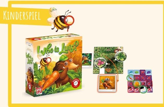 Ein idyllischer Bauernhof mit einem prächtigen Gemüsegarten: Gut getarnt schleicht hier Luis, der freche Maulwurf, durch die Beete und bedient sich an den Karotten, Kürbissen, Radieschen und Gurken. Schaffen es die Kinder als Team, den Dieb zu überführen und zu erraten, wo die Beute versteckt ist? Das kooperative Deduktionsspiel „Who is Luis?“ des Wiener Spieleherstellers Piatnik erfordert Kombinationsgabe und Zusammenarbeit, um den Gemüseräuber zu finden.