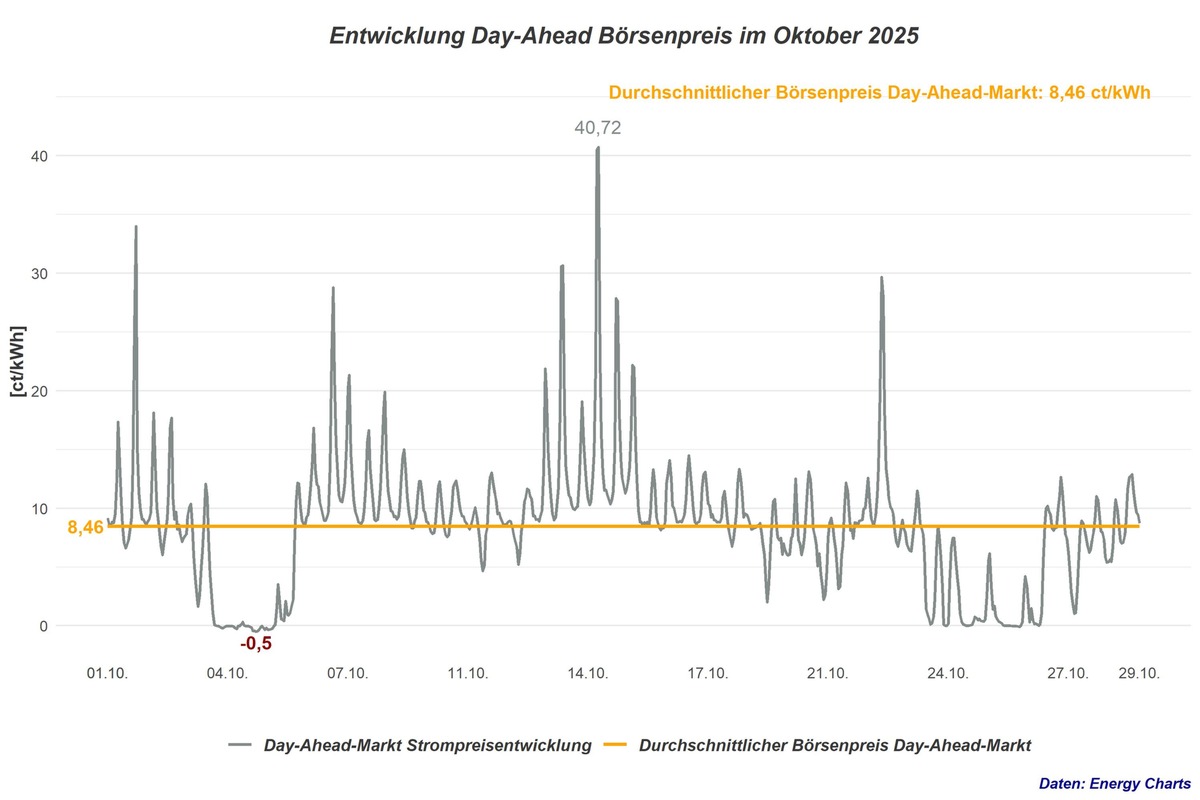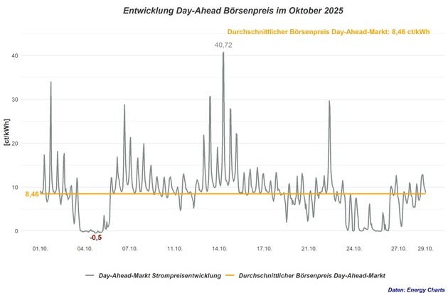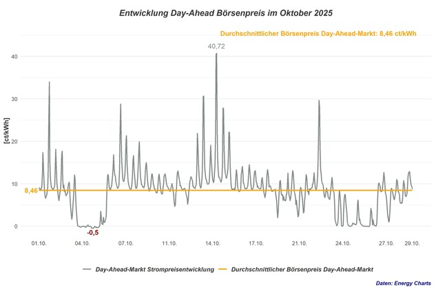 - Durchschnittlicher Börsenstrompreis im Oktober: 8,46 ct/kWh