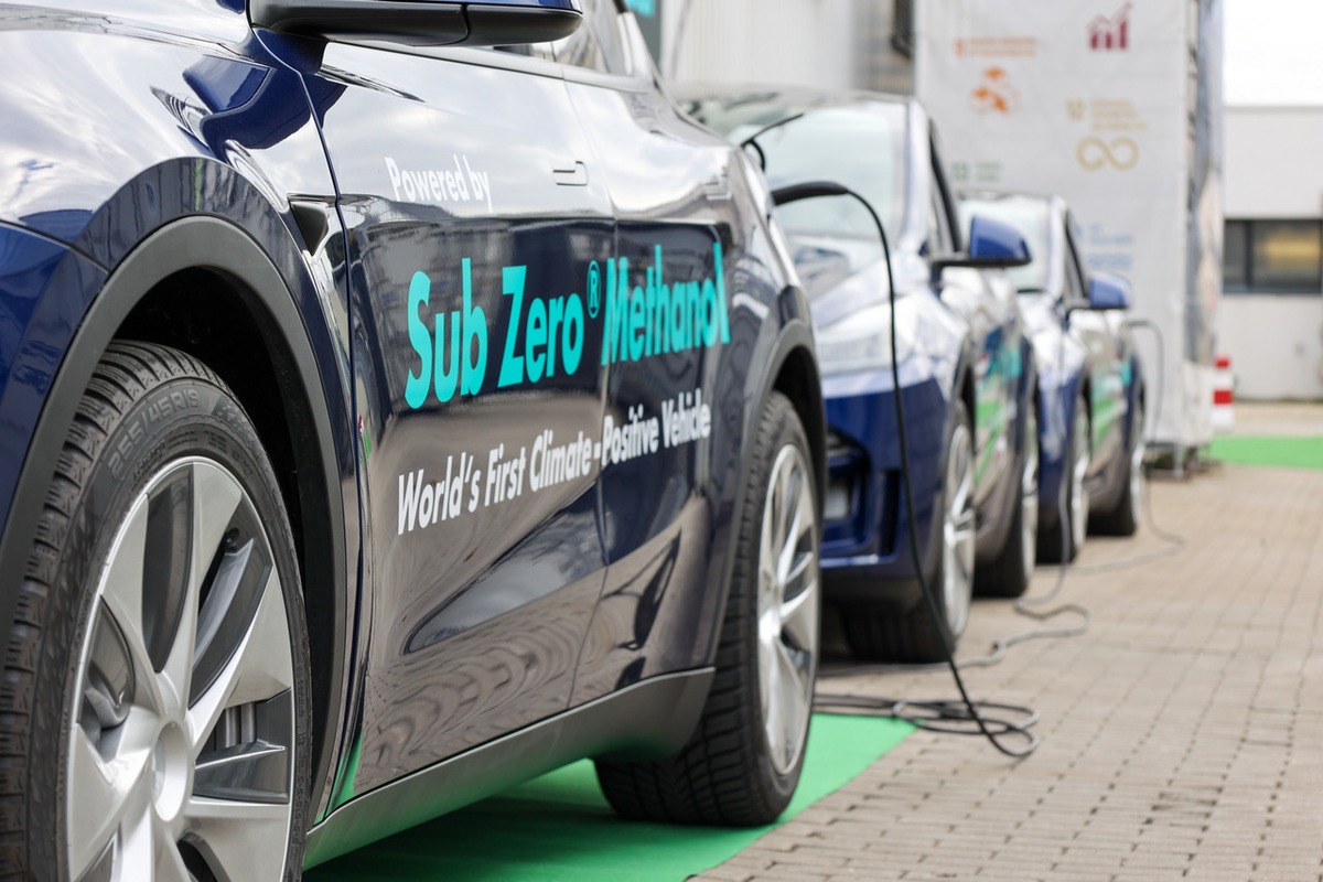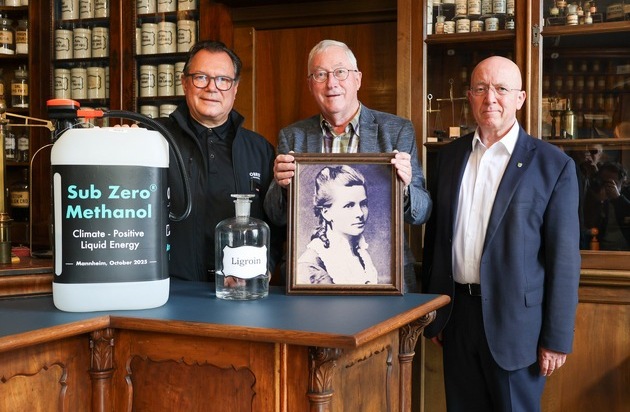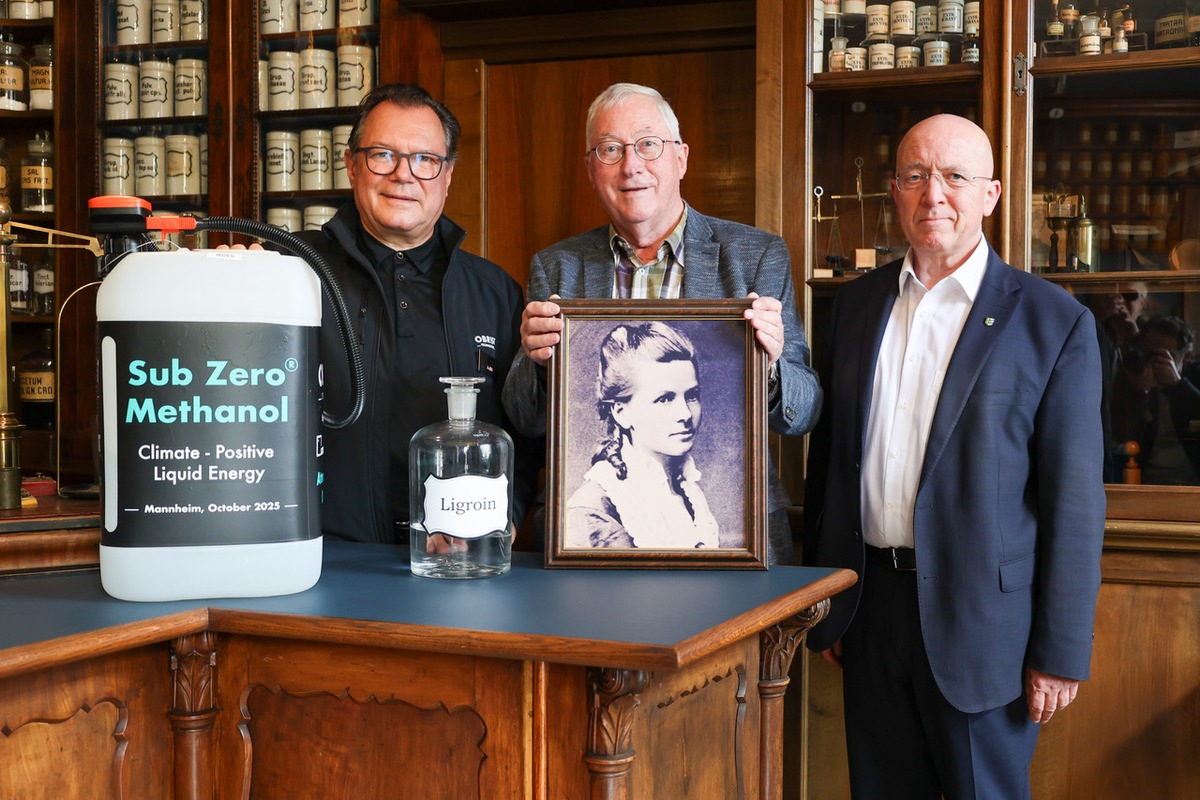 Special thanks go to our technology partners ICODOS, KIT and UP Catalyst, with whom we were able to implement the world's first sub-zero methanol demo plant at the Mannheim sewage treatment plant. There, green methanol is produced from atmospheric and biological CO₂ – a fuel that is not only emission-free, but also net CO₂-negative.
