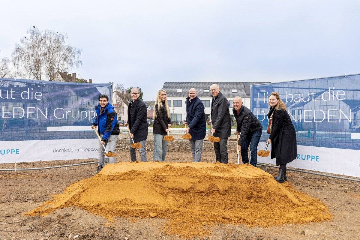 Mönchengladbach/Langenlonsheim, 02.03.2026 – Für das Wohnquartier in der Gebgernstraße in Langenlonsheim beginnt die nächste Phase. Mit dem symbolischen Spatenstich am 26.02.2026 gab die DORNIEDEN Gruppe gemeinsam mit Michael Cyfka, Bürgermeister der Verbandsgemeinde Langenlonsheim-Stromberg, sowie Ortsbürgermeister Prof. Bernhard Wolf den Startschuss für den letzten von insgesamt vier Teilabschnitten.
