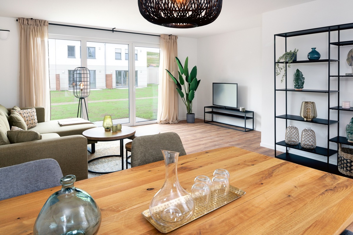 In dem neuen Quartier entstehen ausschließlich Häuser des Typs VISTA L. Die Doppel- und Reihenhäuser bieten auf jeweils rund 129 Quadratmetern Wohnfläche großzügig geschnittene Grundrisse mit durchdachten Raumkonzepten für Familien und Paare. Alle Häuser des aktuellen Teilabschnitts werden im Effizienzhaus-55-Standard errichtet. Dank serieller Planung können sie mit einem optimalen Preis-Leistungs-Verhältnis und innerhalb von sehr kurzer Zeit realisiert werden.