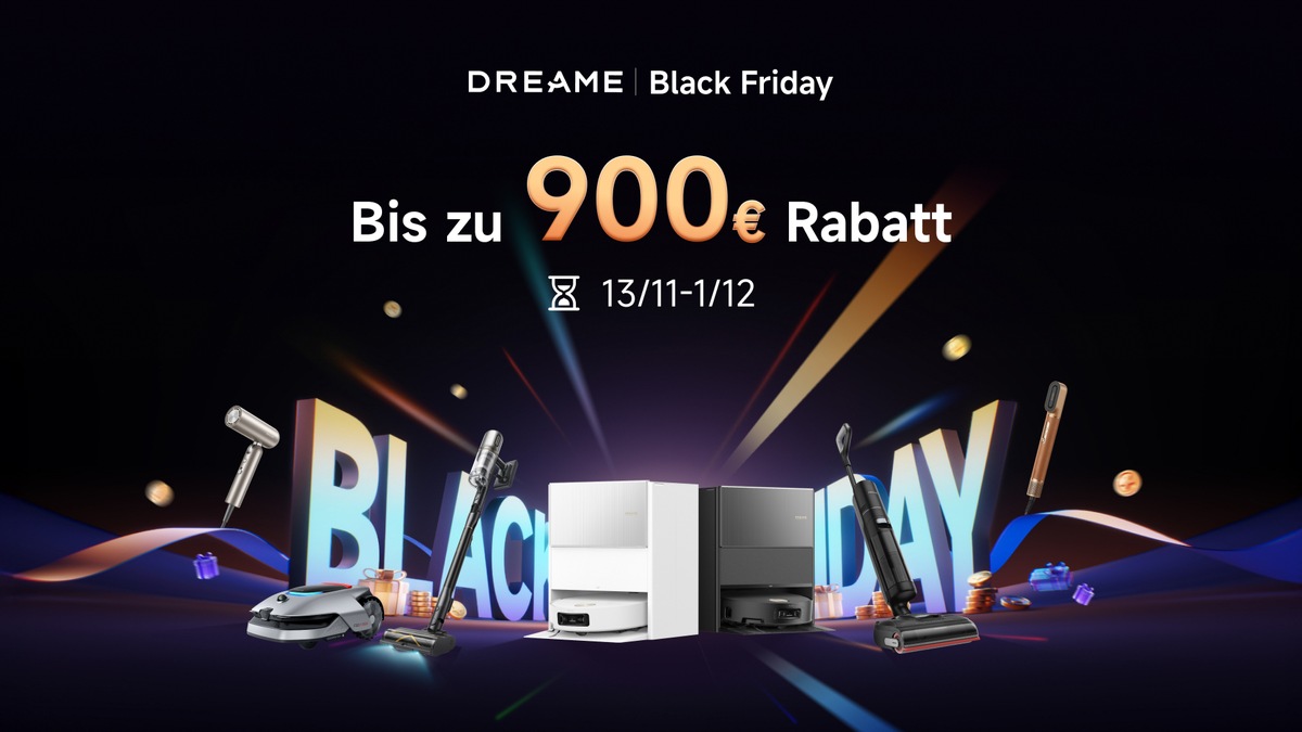 Der Black Friday steht vor der Tür, und Dreame Technology, ein weltweit führender Anbieter von Smart-Home-Geräten, bereitet sich auf eines der spannendsten Shopping-Events des Jahres vor. Zum Start in die Weihnachtssaison bietet Dreame exklusive Rabatte von bis zu 900 EUR auf eine Auswahl seiner meistverkauften Produkte - mit den niedrigsten Preisen des Jahres. Von hochmodernen Saugrobotern und vielseitigen Nass- & Trockensaugern bis hin zu leistungsstarken Akku-Staubsaugern und innovativen Rasenmähern - diese Deals sind perfekt für alle, die ihr Smart Home in diesem Black Friday auf das nächste Level bringen möchten.
