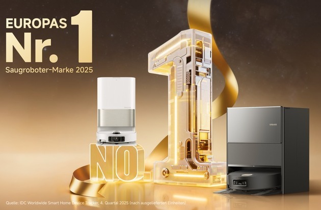 Dreame belegt im Jahr 2025 den ersten Platz im europäischen Markt für Saugroboter nach ausgelieferten Stückzahlen. Das geht aus dem "Worldwide Smart Home Device Tracker" für Q4 2025 des internationalen Marktforschungsunternehmens IDC hervor. Demnach erreichte Dreame im Jahr 2025 einen Marktanteil von 27,6 Prozent in Europa.