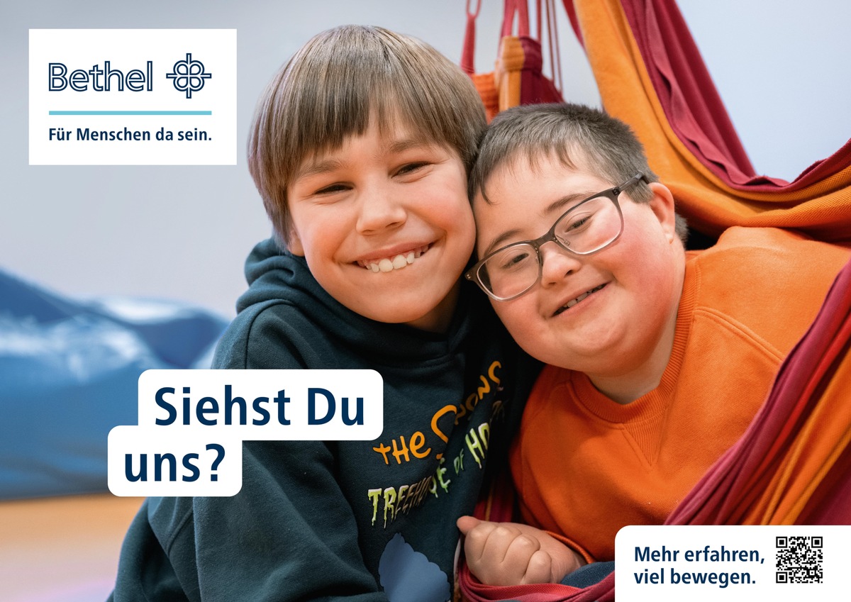 Lukas und Max sind Teil der deutschlandweiten Kampagne, mit der Bethel auf seine diakonische Arbeit aufmerksam macht. Der gewählte Slogan für die aktuellen Großflächenplakate ist eine Frage: "Siehst du mich?" steht da, in großen Buchstaben, direkt neben Menschen, die dem Betrachter in die Augen blicken. Vier unterschiedliche Motive sind in elf Bundesländern auf rund 20.000 analogen und digitalen Flächen zu sehen. Dazu kommen vier Kurzfilme, die auf Bethels Online-Kanälen ausgespielt werden und die die Protagonistinnen und Protagonisten der Kampagne einfühlsam porträtieren.