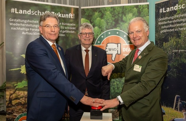 Max von Elverfeldt, Bundesvorsitzender der Familienbetriebe Land und Forst: "Während in Brüssel und Berlin über Bürokratieabbau gesprochen wird, entsteht ein neues, unkontrollierbares Bürokratiemonster. Die Wiederherstellungsverordnung entzieht der Land- und Forstwirtschaft nicht nur Flächen, sie gefährdet dadurch auch die sichere Versorgung mit Nahrungsmitteln sowie Rohstoffen und die damit verbundene geopolitische Unabhängigkeit. Die geplanten Eingriffe wirken sich nicht nur auf die Betriebe, sondern am Ende auch auf die Preise für die Verbraucher aus. Wir teilen den Grundsatz des Green Deal für Klima- und Artenschutz, aber die W-VO ist dafür der falsche Weg. Deshalb sagen wir: No Deal!". Seine Forderung: "Die Bundesregierung hat versprochen, sich für praxisnahe Lösungen einzusetzen. Jetzt muss sie zeigen, ob sie Wort hält."