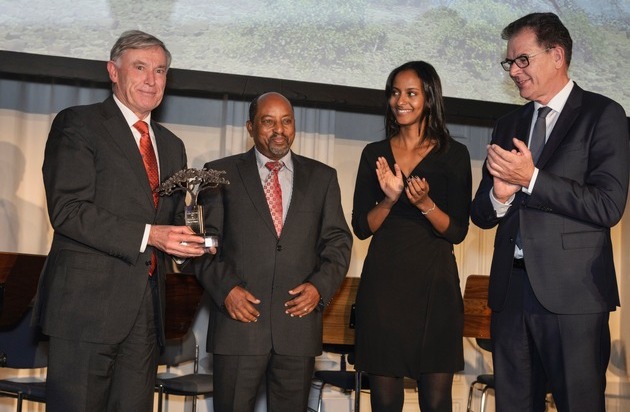 Während einer Feierstunde zum 35-jährigen Bestehen der Stiftung Menschen für Menschen - Karlheinz Böhms Äthiopienhilfe wurde am Samstag (12. November 2016) zum ersten Mal der Karlheinz-Böhm-Preis verliehen. Den Preis erhielt Horst Köhler, Bundespräsident a.D., für sein Engagement für die Menschen in Afrika. Die Laudatio hielt Dr. Gerd Müller, Bundesminister für wirtschaftliche Zusammenarbeit und Entwicklung. Der Preis, der nicht dotiert ist, wurde Horst Köhler durch Berhanu Negussie, dem Landesrepräsentanten von Menschen für Menschen in Äthiopien überreicht. Berhanu Negussie hat von Anfang an Karlheinz Böhm in Äthiopien begleitet.