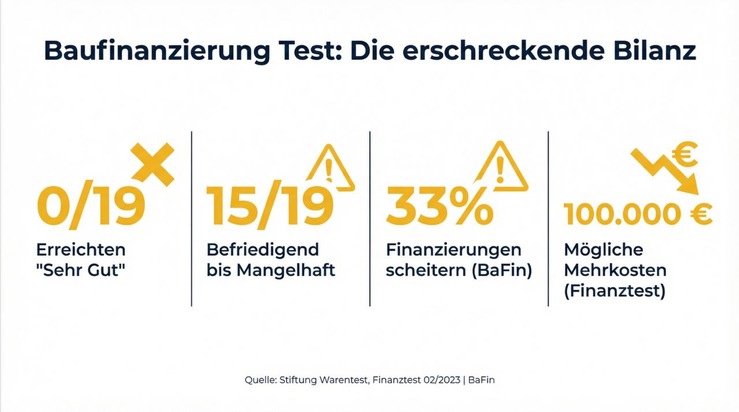 Hinzu kommt: Laut Bundesanstalt für Finanzdienstleistungsaufsicht (BaFin) scheitert etwa jede dritte Baufinanzierung – nicht wegen mangelnder Bonität, sondern wegen mangelhafter Baufinanzierung Beratung.