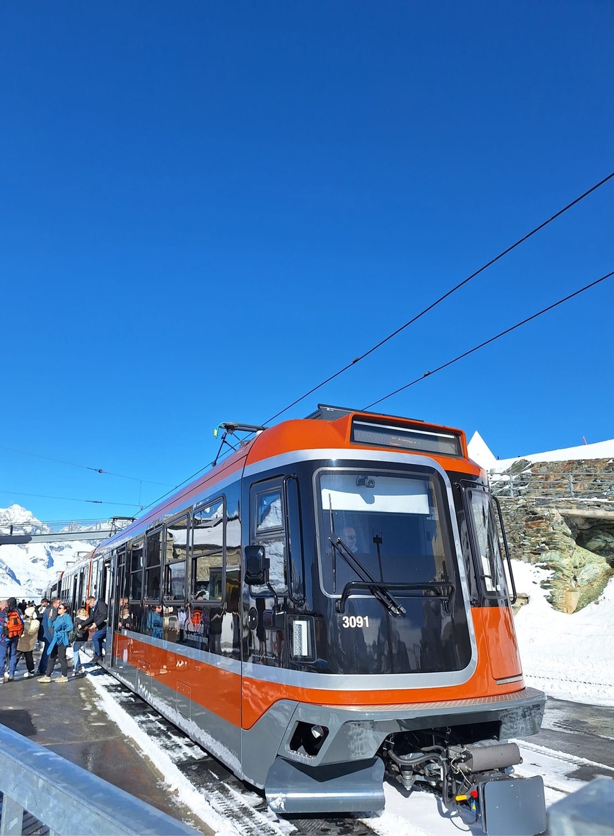 Von Zermatt aus fuhr die Gruppe mit der neuen Gornergratbahn durch die schneebedeckte Bergwelt hinauf zum Gornergrat – mit beeindruckendem Panoramablick auf das majestätische Matterhorn und den Gornergletscher.